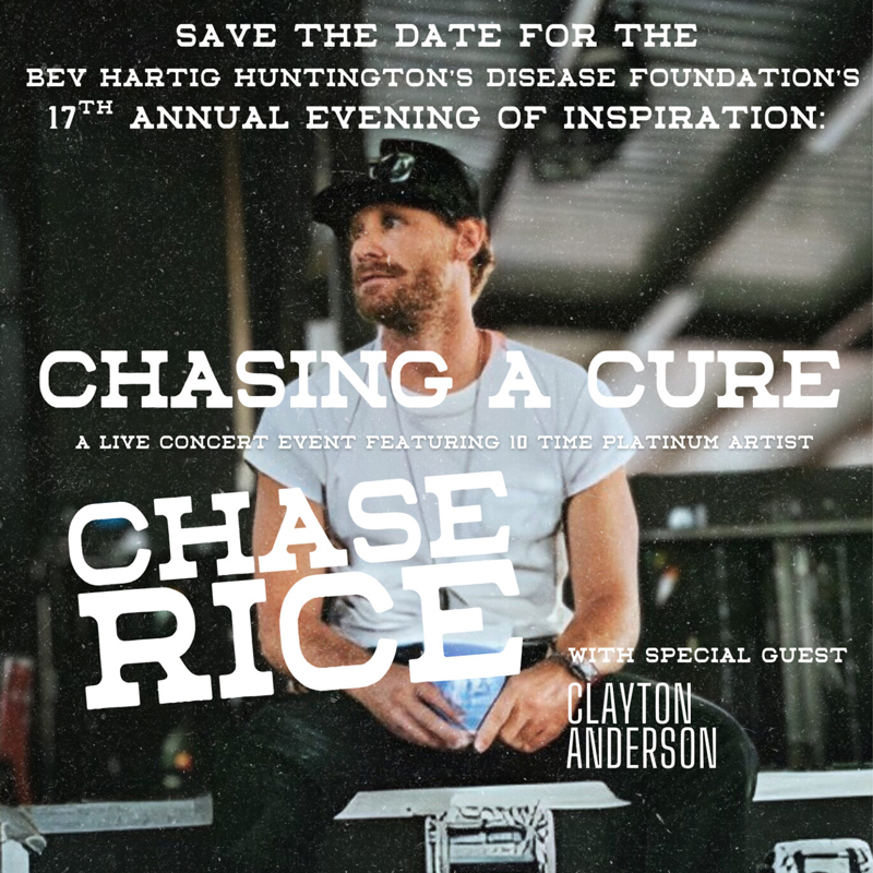 Chasing a Cure What: A live concert event featuring 10 time platinum artist Chase Rice, with special guest Clayton AndersonWhen: Saturday, April 18 @ 5pmWhere: Fishers Event Center Stay tuned—details on how to reserve your tickets and tables will be coming soon! Your exclusive BHHDF ticket includes early entry to the venue at 5 PM, floor-level seating, and a private pass into the front-of-stage pit area, offering an exceptional up-close experience! As a special guest of our event, you will not need to purchase a separate concert ticket through the Fishers Event Center; your access is fully included. We’re excited to see you at the event and are deeply grateful for everything you’ve done—and continue to do—to raise awareness and support the search for a cure for Huntington’s...